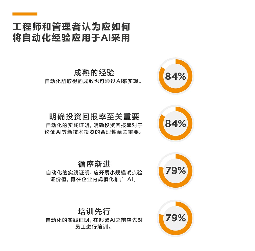 回顾过往的经验教训,工程师与管理者一致认为,推动自动化成功落地的诸多因素也为AI部署指明了方向,其中包括: