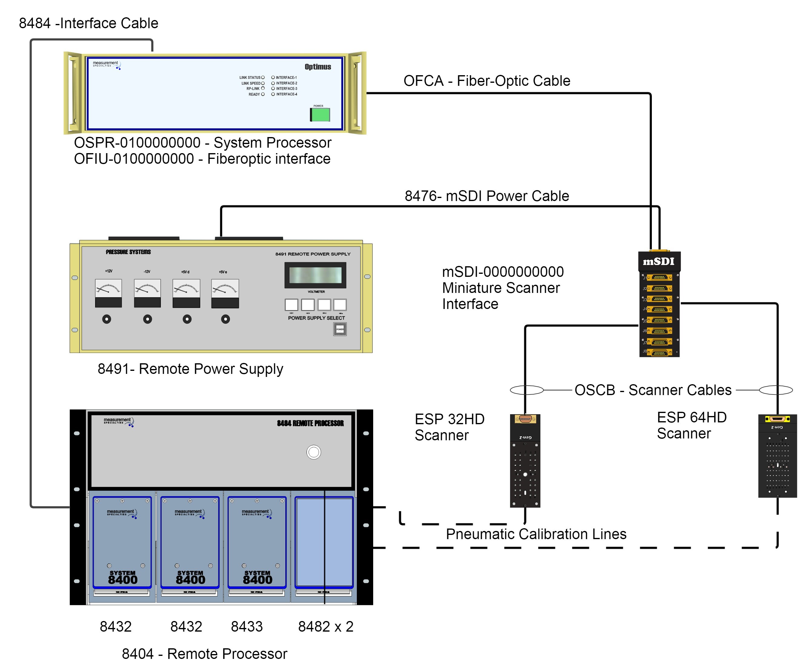 使用 ESP 小型压力扫描阀或新型 MicroScanner 测量压力,然后将压力值在小型扫描阀数字化仪接口 (mSDI) 单元内转换为数字值。工程单位测量值以高达 1GBit/秒的数据速率在 Optimus 系统处理器内进行计算,并通过以太网进行报告。对于更喜欢在他们自己的主计算机中计算工程单位数据的用户,可以通过以太网接口接收二进制格式的测量值。