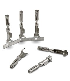 我们的 AMPSEAL 16(HDSF 16 号)端子各个额定电流都高达 13 安培。这些冲压成型端子可使用 14-20 AWG (2.50-0.50 mm2) 导线,由铜合金制成。AMPSEAL 16 端子镀层选项包括镀镍或镀金。