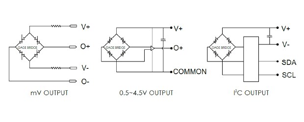 FX29 力传感器主体是采用金属注塑成型和冲压技术制成的两件式结构,专为大批量、低成本生产而设计。此外,一体多信号输出(图 5)是 FX29 的另一个特性。标准产品通过一个紧凑型封装提供 mV/V 信号、放大的电压输出以及数字 I2C 输出,不需要加外围电子设备模块。